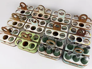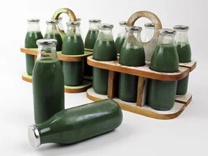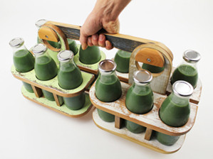 Designtree developed a simple crate made from recycled wooden weather boards. Each smoothie crate holds six glass bottles, and with the use of a simple carry handle, 2 crates can be carried in each hand.
