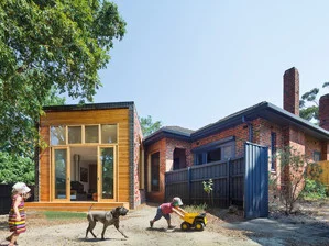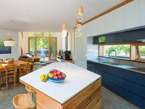 A great little article by Stuart Harrison in Architecture AU showcases a suburban Melbourne home re-invigerated by WoodWoodWard Architecture. The kitchen proudly features 3 Pil pendant lamps above the kitchen island. Photos by John Gollings.